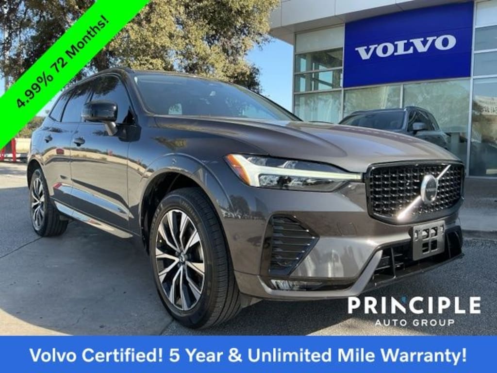 Discover refined Scandinavian design and confident performance in this 2023 Volvo XC60 B5 Plus Dark Theme with 72,368 miles, now available at Principle Volvo Cars San Antonio. This Certified Pre-Owned Volvo has passed a rigorous Volvo Factory Certification process and includes an exceptional 5 years of warranty coverage with unlimited miles for long term peace of mind. The XC60 B5 Plus Dark Theme delivers a perfect balance of turbocharged efficiency, advanced safety technology, and bold dark exterior styling that elevates every drive. As a luxury midsize SUV, the Volvo XC60 is highly sought after by drivers searching for comfort, reliability, and innovative safety features in San Antonio and across South Texas.