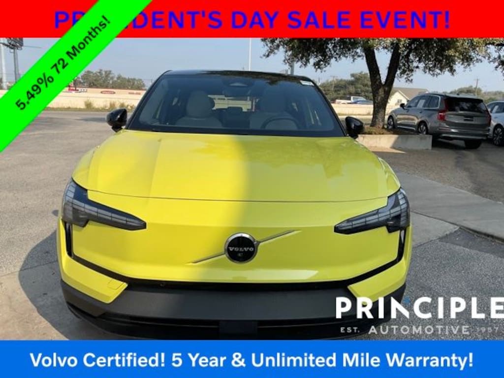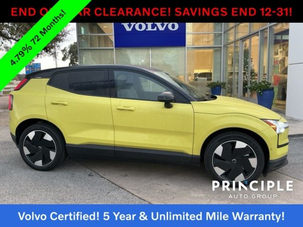 This Certified Pre-Owned 2025 Volvo EX30 Twin Motor Performance Ultra is proudly offered by Principle Volvo Cars San Antonio, located at 1326 NE Interstate 410 Loop, San Antonio, TX 78209, just 5 short minutes from San Antonio International Airportperfect for local and out-of-town buyers alike. Call us today at 210.384.1129 to schedule your test drive. At Principle Auto, our purpose is simple and powerful: to help people move through life in a sustainable wayand this Moss Yellow EX30 is a bold step toward that future.