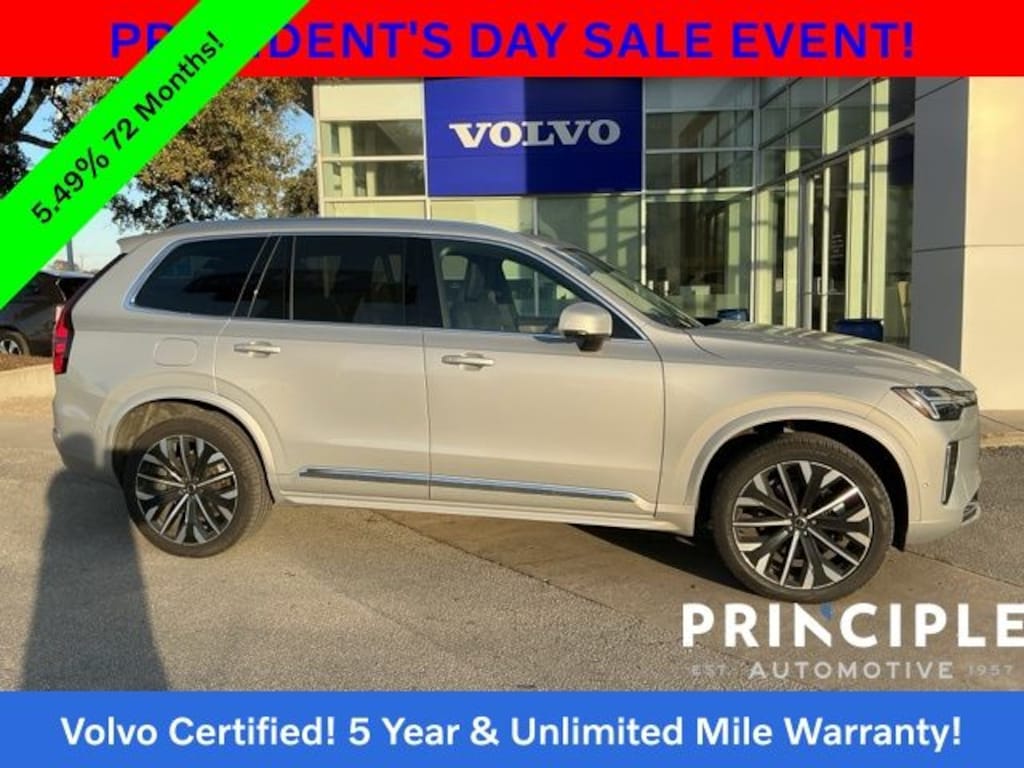 Discover the exceptional value of the 2025.5 Volvo XC90 B5 Plus Certified Pre-Owned SUV with only 17,038 miles, available now at Principle Volvo Cars San Antonio. This luxury midsize SUV delivers the perfect blend of Scandinavian design, advanced safety, and refined performance, making it an ideal choice for families and drivers seeking comfort, confidence, and capability. As a Volvo Factory Certified vehicle, this XC90 has passed a rigorous inspection and is backed by one of the strongest programs in the industry.