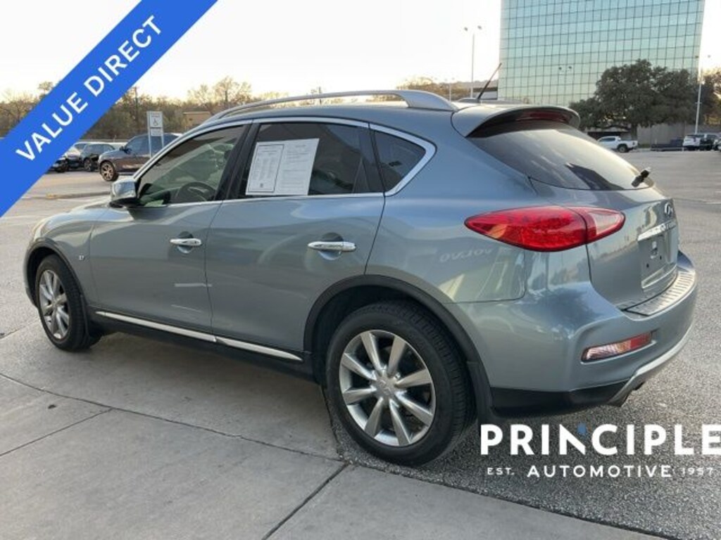 Principle Volvo Cars San Antonio is conveniently located at 1326 NE Interstate 410 Loop San Antonio TX 78209, just five short minutes from the San Antonio International Airport. For more information or to schedule a visit, call us at 210.384.1129. At Principle Auto, our purpose is to help people move through life in a sustainable way, and that includes offering honest value driven vehicles like this 2016 INFINITI QX50 to our San Antonio area community.Discover value and versatility with this 2016 INFINITI QX50 now available at Principle Volvo Cars San Antonio. Finished with the premium styling and performance INFINITI is known for, this compact luxury SUV offers a smooth driving experience, a comfortable interior, and the elevated ride height Texas drivers appreciate. With 140778 miles, this QX50 represents an affordable entry into luxury ownership for drivers searching for a used INFINITI SUV in San Antonio TX or near the San Antonio International Airport.